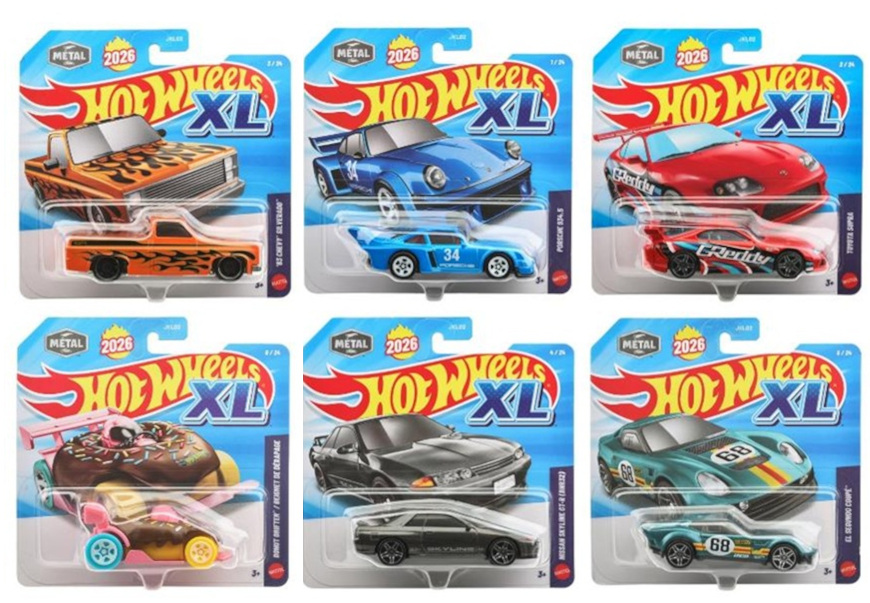 スケール 1:43 商品説明 1/43スケール 2026 ホットウィール XL ベーシックカー #A (国内流通版)6種セット ・ポルシェ 934.5 x1・トヨタスープラ x1・'83 シェビーシルバラード x1・日産 スカイライン GT-R (BNR32) x1・エルセグンドクーペ x1・ドーナツドリフター x1 入荷数がご予約数に達しなかった場合はご予約受付順となります。